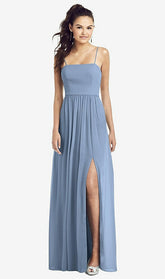 【NEW】【STYLE: TH017】スリム スパゲッティ ストラップ シフォン ドレス 前面 スリット 【COLOR: Cloudy】【SIZE: 00-30W】