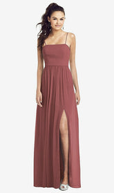 【NEW】【STYLE: TH017】スリム スパゲッティ ストラップ シフォン ドレス 前面 スリット 【COLOR: English Rose】【SIZE: 00-30W】