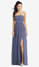 【NEW】【STYLE: TH017】スリム スパゲッティ ストラップ シフォン ドレス 前面 スリット 【COLOR: French Blue】【SIZE: 00-30W】