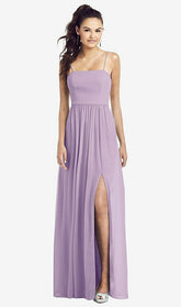 【NEW】【STYLE: TH017】スリム スパゲッティ ストラップ シフォン ドレス 前面 スリット 【COLOR: Pale Purple】【SIZE: 00-30W】