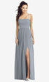 【NEW】【STYLE: TH017】スリム スパゲッティ ストラップ シフォン ドレス 前面 スリット 【COLOR: Platinum】【SIZE: 00-30W】