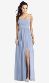 【NEW】【STYLE: TH017】スリム スパゲッティ ストラップ シフォン ドレス 前面 スリット 【COLOR: Sky Blue】【SIZE: 00-30W】
