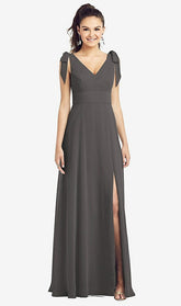 【NEW】【STYLE: TH018】弓肩 Vバック シフォン ガウン 前面 スリット【COLOR: Caviar Gray】【SIZE: 00-30W】