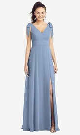 【NEW】【STYLE: TH018】弓肩 Vバック シフォン ガウン 前面 スリット【COLOR: Cloudy】【SIZE: 00-30W】