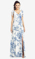 【NEW】【STYLE: TH018】弓肩 Vバック シフォン ガウン 前面 スリット【COLOR: Cottage Rose Dusk Blue】【SIZE: 00-30W】