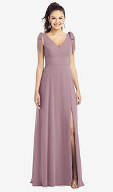 【NEW】【STYLE: TH018】弓肩 Vバック シフォン ガウン 前面 スリット【COLOR: Dusty Rose】【SIZE: 00-30W】