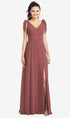 【NEW】【STYLE: TH018】弓肩 Vバック シフォン ガウン 前面 スリット【COLOR: English Rose】【SIZE: 00-30W】