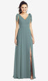 【NEW】【STYLE: TH018】弓肩 Vバック シフォン ガウン 前面 スリット【COLOR: Icelandic】【SIZE: 00-30W】