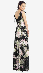 【NEW】【STYLE: TH018】弓肩 Vバック シフォン ガウン 前面 スリット【COLOR: Noir Garden】【SIZE: 00-30W】