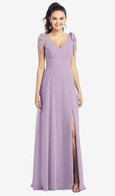 【NEW】【STYLE: TH018】弓肩 Vバック シフォン ガウン 前面 スリット【COLOR: Pale Purple】【SIZE: 00-30W】