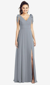 【NEW】【STYLE: TH018】弓肩 Vバック シフォン ガウン 前面 スリット【COLOR: Platinum】【SIZE: 00-30W】