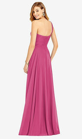 【NEW】【STYLE: TH025】ワンショルダー ドレープ シフォン マキシ ドレス - ダニ【COLOR: Tea Rose】【SIZE: 00-30W】