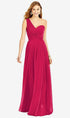 ピーク・アブーの恋人の胴着は、片方の肩のルクス・シフォン・フル・レングス・ブライドメイド・ドレスを薄暗く見せています。かわいくて夢のような、サークルスカートは微妙なドレープを備えた雲のように浮いています。