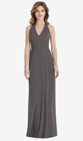【NEW】【STYLE: TH029】Vネック ホルター シフォン マキシ ドレス - タリン【COLOR: Caviar Gray】【SIZE: 00-30W】
