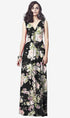 【NEW】【STYLE: TH031】ドレープ Vネック シアレッド シフォン マキシ ドレス【COLOR: Noir Garden】【SIZE: 00-30W】
