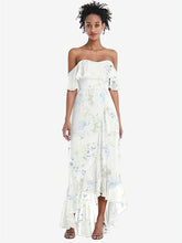 【NEW】【STYLE: TH039】オフショルダー フリル 高 低 マキシ ドレス【COLOR: Bleu Garden】【SIZE: 00-30W】