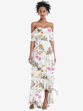 【NEW】【STYLE: TH039】オフショルダー フリル 高 低 マキシ ドレス【COLOR: Butterfly Botanica Ivory】【SIZE: 00-30W】
