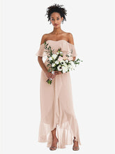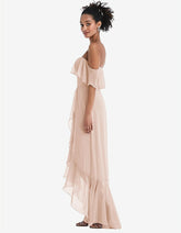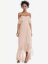 【NEW】【STYLE: TH039】オフショルダー フリル 高 低 マキシ ドレス【COLOR: Cameo】【SIZE: 00-30W】