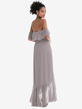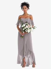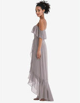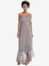 【NEW】【STYLE: TH039】オフショルダー フリル 高 低 マキシ ドレス【COLOR: Cashmere Gray】【SIZE: 00-30W】