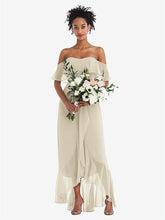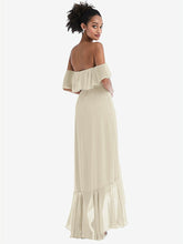 【NEW】【STYLE: TH039】オフショルダー フリル 高 低 マキシ ドレス【COLOR: Champagne】【SIZE: 00-30W】