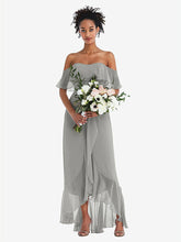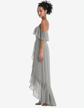 【NEW】【STYLE: TH039】オフショルダー フリル 高 低 マキシ ドレス【COLOR: Chelsea Gray】【SIZE: 00-30W】