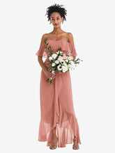 【NEW】【STYLE: TH039】オフショルダー フリル 高 低 マキシ ドレス【COLOR: Desert Rose】【SIZE: 00-30W】