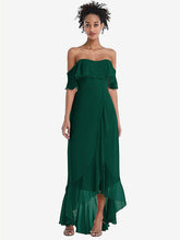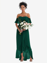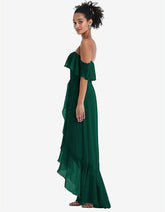 【NEW】【STYLE: TH039】オフショルダー フリル 高 低 マキシ ドレス【COLOR: Hunter Green】【SIZE: 00-30W】