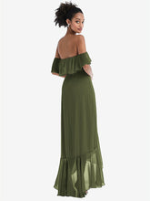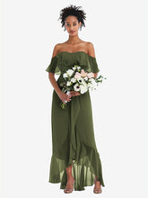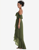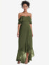 【NEW】【STYLE: TH039】オフショルダー フリル 高 低 マキシ ドレス【COLOR: Olive Green】【SIZE: 00-30W】