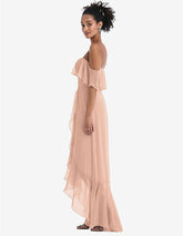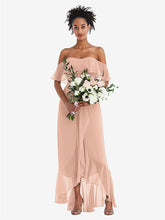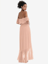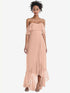 【NEW】【STYLE: TH039】オフショルダー フリル 高 低 マキシ ドレス【COLOR: Pale Peach】【SIZE: 00-30W】