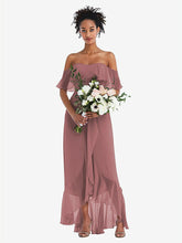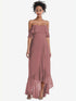 【NEW】【STYLE: TH039】オフショルダー フリル 高 低 マキシ ドレス【COLOR: Rosewood】【SIZE: 00-30W】