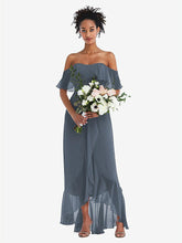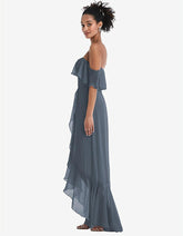 【NEW】【STYLE: TH039】オフショルダー フリル 高 低 マキシ ドレス【COLOR: Silverstone】【SIZE: 00-30W】