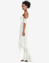 【NEW】【STYLE: TH039】オフショルダー フリル 高 低 マキシ ドレス【COLOR: Spring Fling】【SIZE: 00-30W】