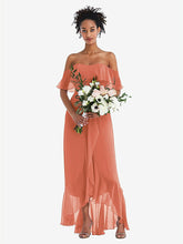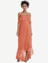 【NEW】【STYLE: TH039】オフショルダー フリル 高 低 マキシ ドレス【COLOR: Terracotta Copper】【SIZE: 00-30W】