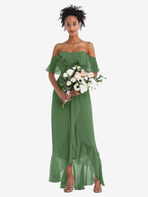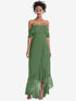 【NEW】【STYLE: TH039】オフショルダー フリル 高 低 マキシ ドレス【COLOR: Vineyard Green】【SIZE: 00-30W】