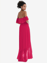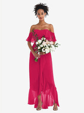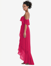 【NEW】【STYLE: TH039】オフショルダー フリル 高 低 マキシ ドレス【COLOR: Vivid Pink】【SIZE: 00-30W】