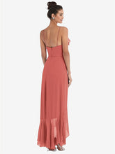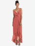 【NEW】【STYLE: TH040】Ruffle-Trimmed V-Neck High Low ラップ ドレス【COLOR: Coral Pink】【SIZE: 00-30W】