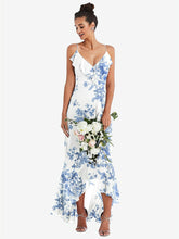 【NEW】【STYLE: TH040】Ruffle-Trimmed V-Neck High Low ラップ ドレス【COLOR: Cottage Rose Dusk Blue】【SIZE: 00-30W】