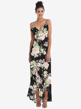 【NEW】【STYLE: TH040】Ruffle-Trimmed V-Neck High Low ラップ ドレス【COLOR: Noir Garden】【SIZE: 00-30W】