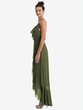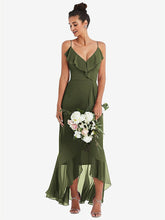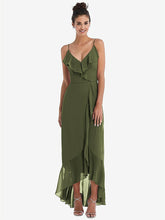 【NEW】【STYLE: TH040】Ruffle-Trimmed V-Neck High Low ラップ ドレス【COLOR: Olive Green】【SIZE: 00-30W】