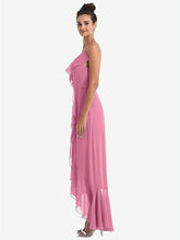【NEW】【STYLE: TH040】Ruffle-Trimmed V-Neck High Low ラップ ドレス【COLOR: Orchid Pink】【SIZE: 00-30W】