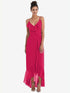 【NEW】【STYLE: TH040】Ruffle-Trimmed V-Neck High Low ラップ ドレス【COLOR: Vivid Pink】【SIZE: 00-30W】