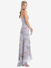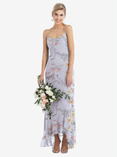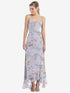 【NEW】【STYLE: TH041】スクープ 首 フリルトリム 高 低 マキシ ドレス【COLOR: Butterfly Botanica Silver Dove】【SIZE: 00-30W】