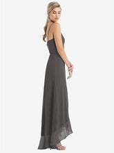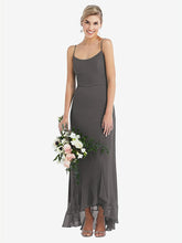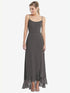 【NEW】【STYLE: TH041】スクープ 首 フリルトリム 高 低 マキシ ドレス【COLOR: Caviar Gray】【SIZE: 00-30W】