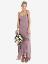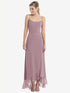 【NEW】【STYLE: TH041】スクープ 首 フリルトリム 高 低 マキシ ドレス【COLOR: Dusty Rose】【SIZE: 00-30W】