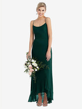 【NEW】【STYLE: TH041】スクープ 首 フリルトリム 高 低 マキシ ドレス【COLOR: Evergreen】【SIZE: 00-30W】
