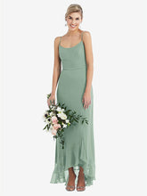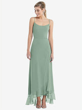 【NEW】【STYLE: TH041】スクープ 首 フリルトリム 高 低 マキシ ドレス【COLOR: Seagrass】【SIZE: 00-30W】