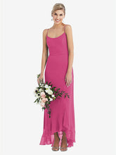 エレガントなエッジを備えたスタイリーでシンプルなこのLux Chiffon Maxiドレスは、十分な肌を誇示するスリムなスパゲッティストラップを備えた柔らかい丸いネックラインを備えています。高いスカートに沿ったフリルのトリムは、控えめなシルエットに遊び心のあるタッチを追加します。軽薄で上品なすべてが一度に、それは黒ネクタイの出来事や正式な機会に最適なドレスです。
