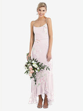 【NEW】【STYLE: TH041】スクープ 首 フリルトリム 高 低 マキシ ドレス【COLOR: Watercolor Print】【SIZE: 00-30W】