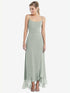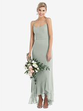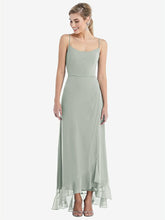 【NEW】【STYLE: TH041】スクープ 首 フリルトリム 高 低 マキシ ドレス【COLOR: Willow Green】【SIZE: 00-30W】