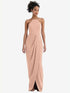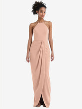 【NEW】【STYLE: TH044】ホルター ドレープ チューリップ スカート マキシ ドレス【COLOR: Pale Peach】【SIZE: 00-30W】